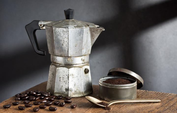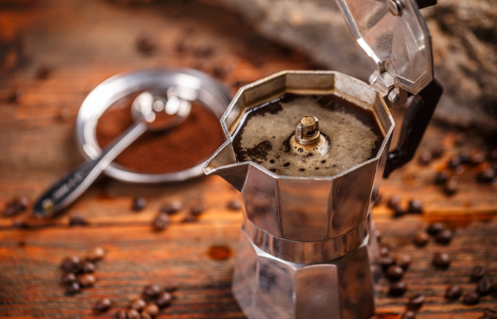 Sobald der Kaffee langsam in die obere Kammer des Espressokochers fließt und ein zischendes Geräusch zu hören ist, entferne den Espressokocher sofort von der Hitze.